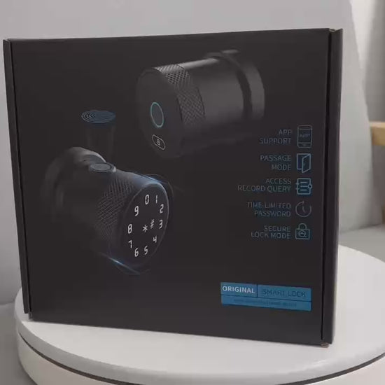 This smart lock features a durable aluminum alloy housing with a modern cylindrical design. The exterior surface has a finely ribbed, vertical-line texture, providing both a stylish appearance and enhanced grip for users. The lock is designed for convenient and secure access, supporting fingerprint unlocking, mechanical key unlocking, and app-based control via Bluetooth.
